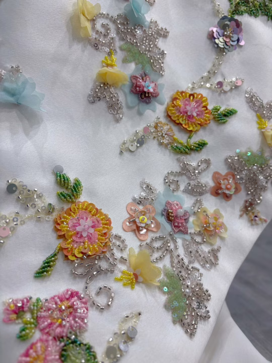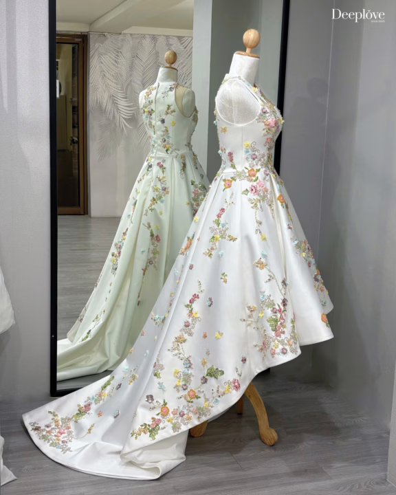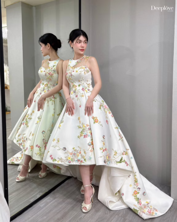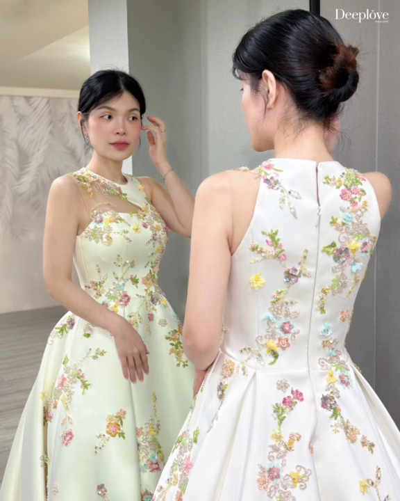 ฟิตติ้งให้ชมชุดยกน้ำชาใหม่ล่าสุด ดีเทลปักลวดลายดอกไม้แบบ𝟯𝗗สีละมุน