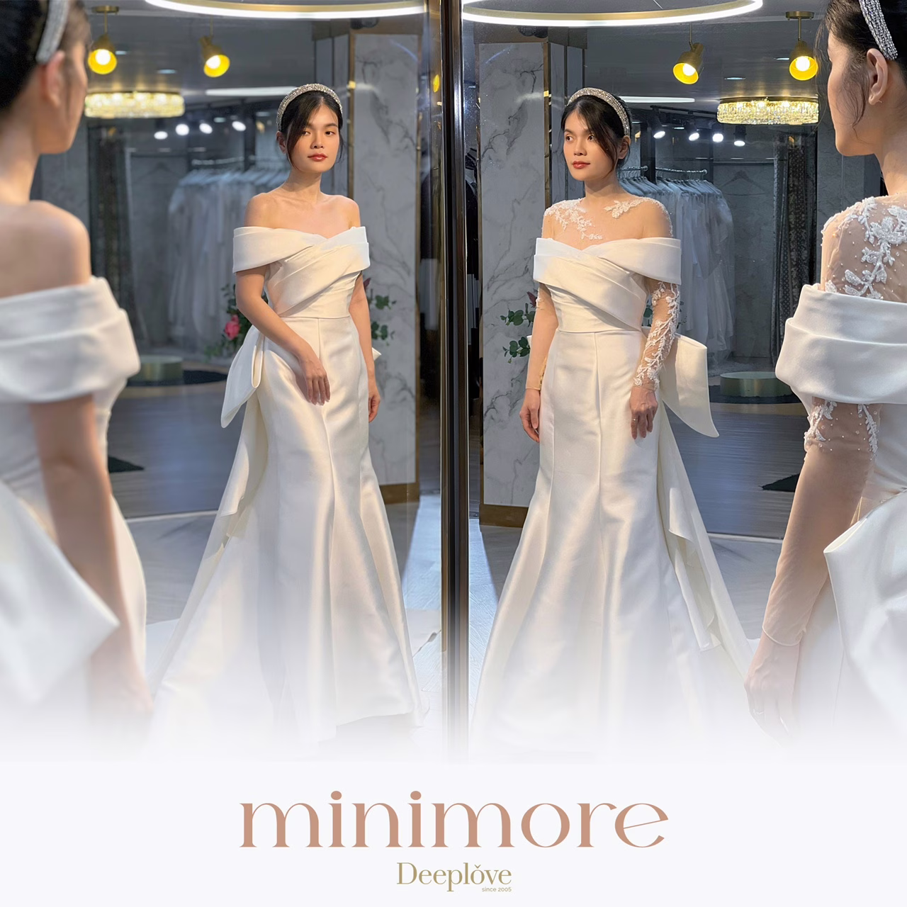 ชุดเจ้าสาวมินิมอล ทรงทรัมเพท ผ้า Silk Micado ดีไซน์แนบโอบให้ฟีลสาวหวาน