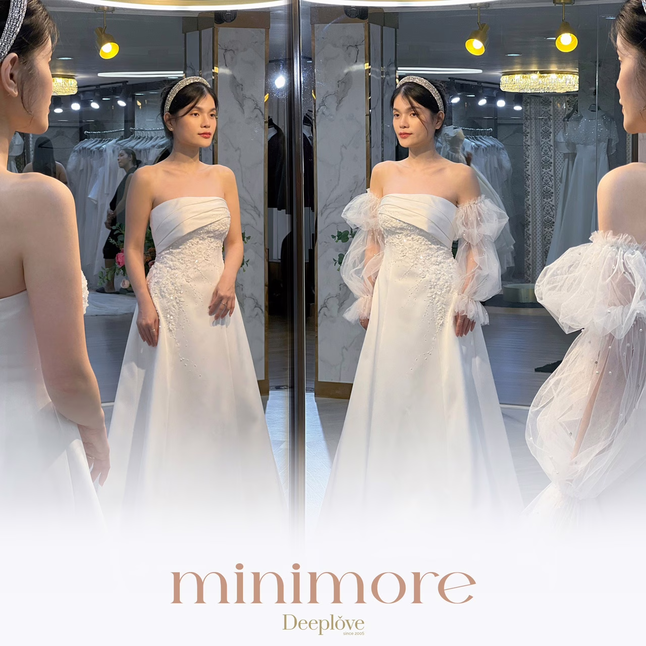 ปักประดับแต่ยังคงความมินิมอลที่ช่วงตัว เป็นประกายมอบความหรูหรา สวมใส่กับแขน puff sleeve ที่สามารถถอดออกได้
